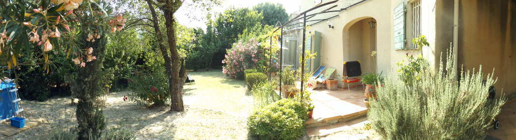 Notre jardin est entièrement clos et arboré : oliviers, figuiers, cerisiers, lauriers roses etc... Très agréable aux beaux jours! il y a aussi plusieurs terrasses, au rez de chaussée. Il y a un portique enfant avec balançoires, toboggan et une petite maison en bois.