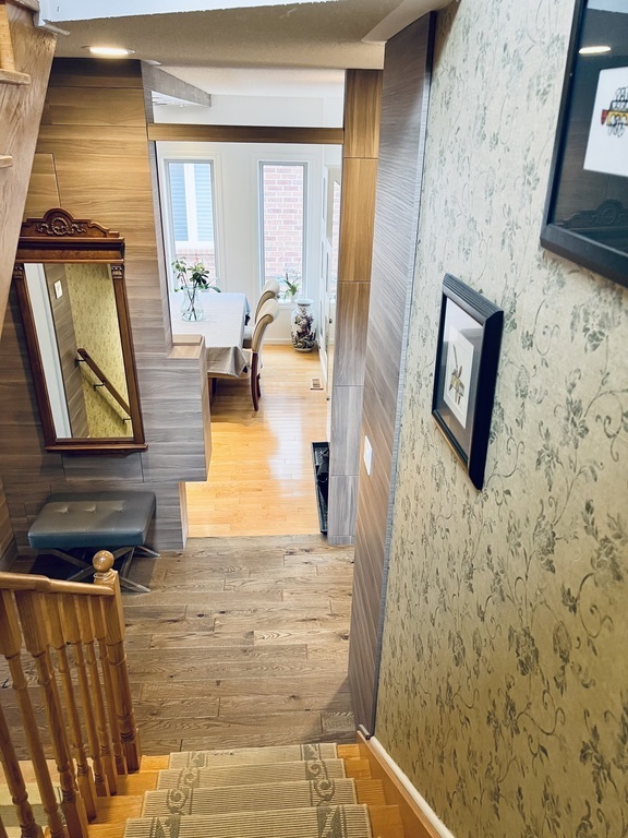 Our house is a two story detached home and consists of 3 bedrooms and two bathrooms upstairs. On the main floor there is a living room, study and kitchen with dining room. There is a washroom on the landing leading to the basement. In the basement there is a TV room with a wide-screen TV and treadmill as well as laundry room. Another wide-screen TV is in one of the bedrooms upstairs.