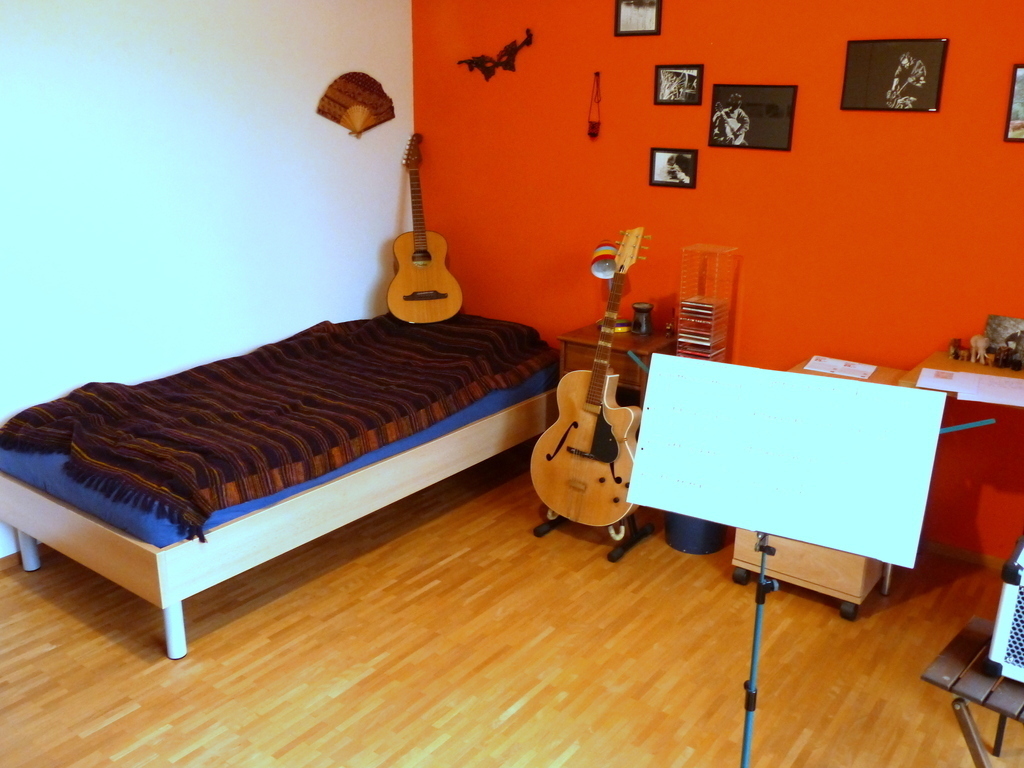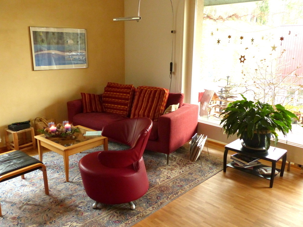 We live in a bright and cosy four-room apartment. We have a living-room with integrated kitchen and three bedrooms. Our "fifth" room is a huge balcony, where we have our meals in summer and also enjoy some time with a good book and a glass of wine.