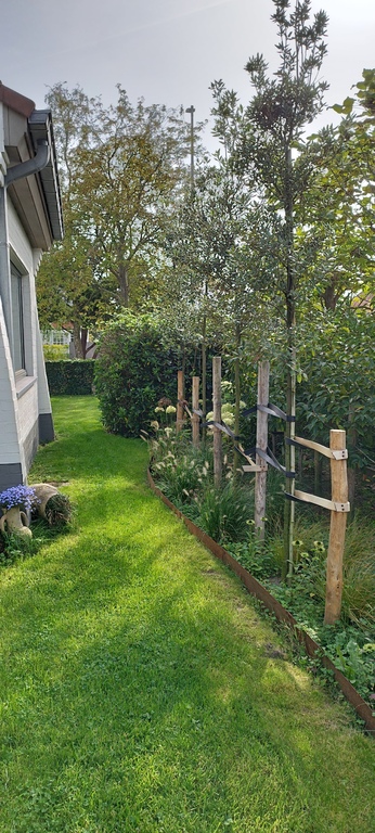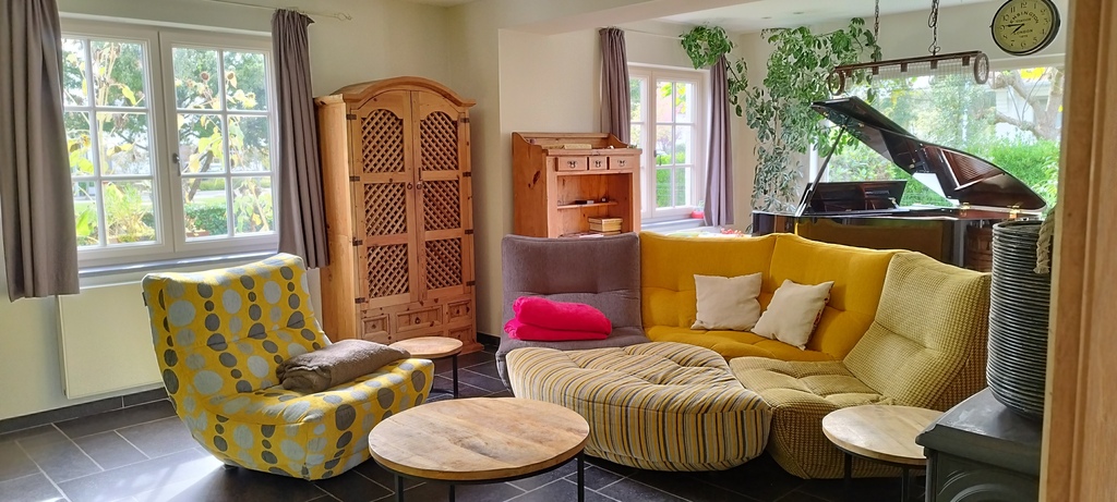 We live in a two-storey house once built by my grandparents and completely renovated. What we really like about our house is that it is light and that it is surrounded by a quiet, green environment. On the ground floor there is a hall with toilet, a spacious living-room with a new coach, a fireplace, a wing piano and a little play corner. From the living-room you can enter the kitchen. The oaken kitchen is equipped with a dishwasher, oven, microwave and an induction unit to cook. At the cooking island with the induction unit you can enjoy your breakfast or an appetiser. In the kitchen you can also find a family table. The sliding window gives you access to the terrace. There's another kitchen door that leads you to the washing room. In the washing room there's a washing machine, a tumble dryer, cleaning products and a shower. As you can enter the garden from the washing room, this can be quite convenient in summer when you come back from the beach. Next to the house there's a garage where you can park your car or you can leave it on the long drive on the right side of the house.