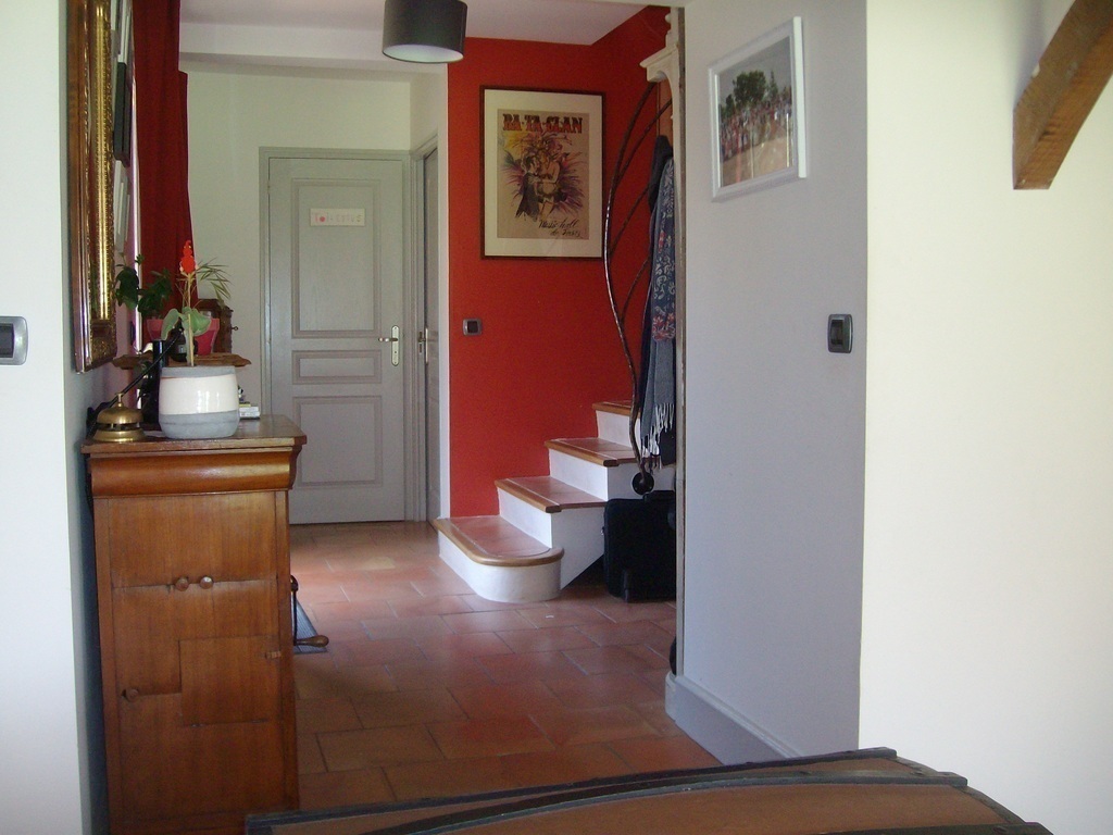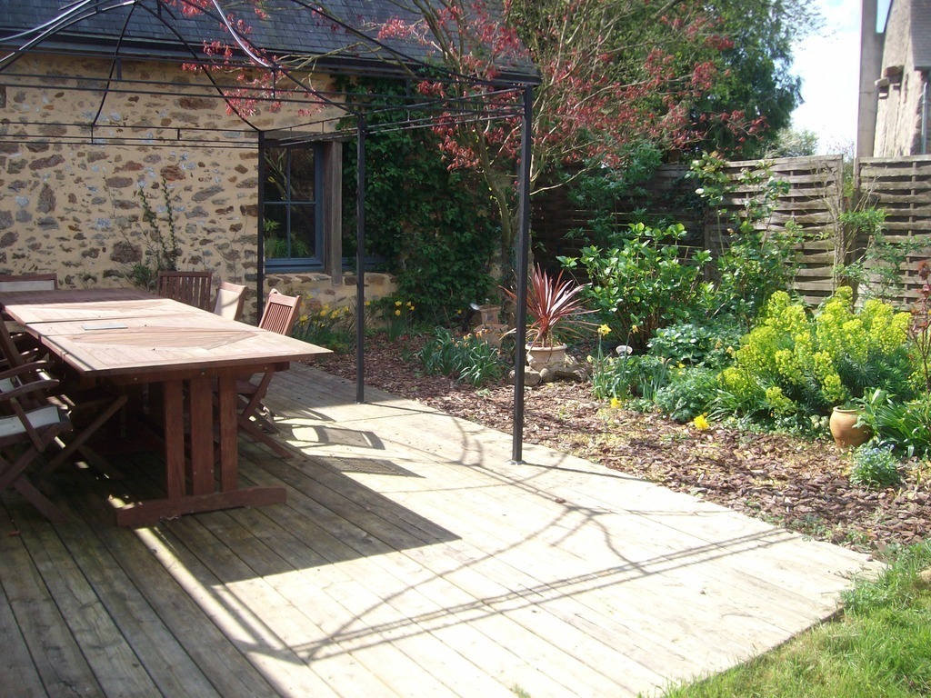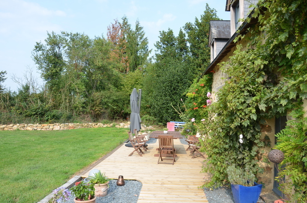 Very beautiful ground with 2 beautifuls terraces surrounded by flowers, a pretty little pond with moorhens. We have 2 cats that walks in freedom in the land...