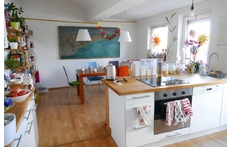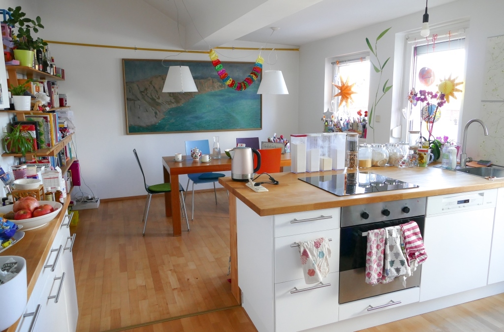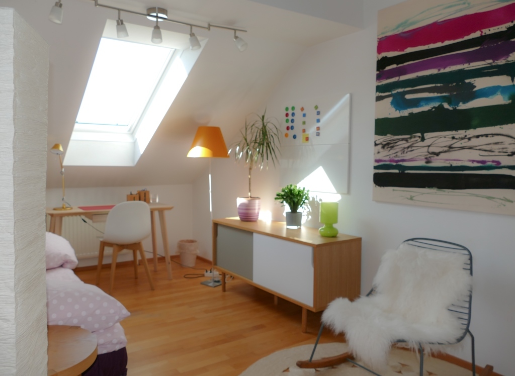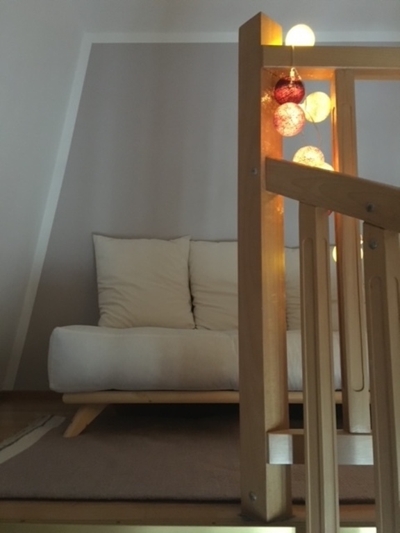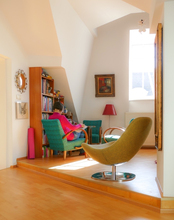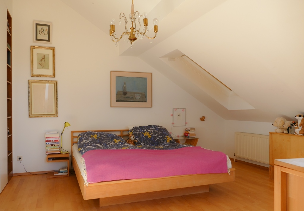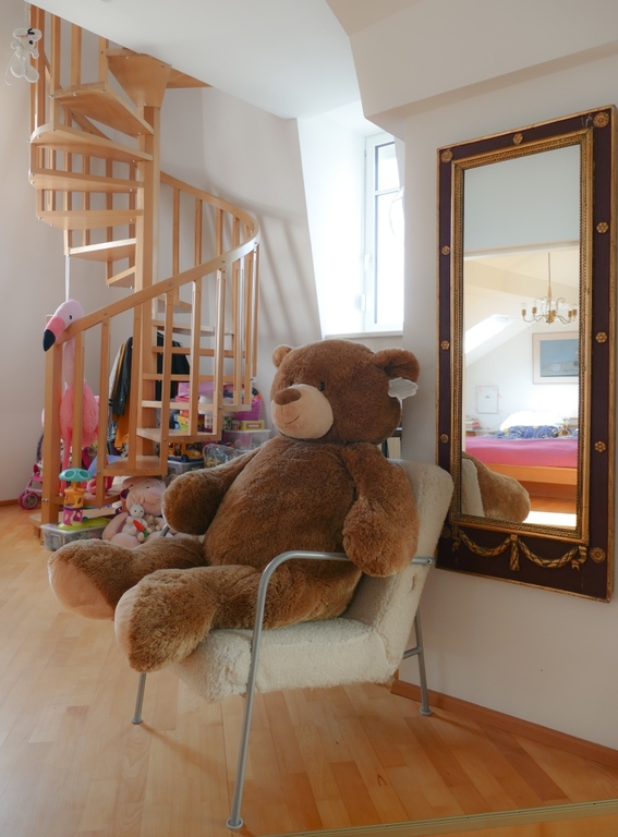 Our appartment is on the 4th floor (with lift) in a house around 1900. It has 150sqm/1.615 feet. 5 people can sleep comfortably. There are 3 bedrooms (1 master bed room for 2, 1 children bedroom for 2 children, 1 guest room for 1-2), 1 living room, kitchen, bathroom, WC, and an attic (playroom or extra bed room).