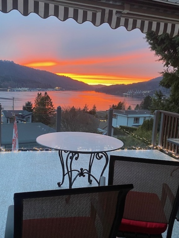 With ocean views and gorgeous sunsets, our family home is located in a quiet suburb an hour by transit from downtown Vancouver.