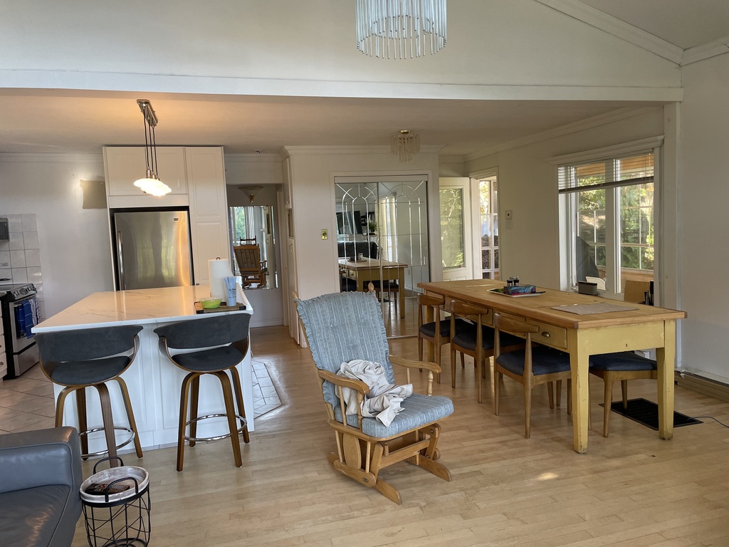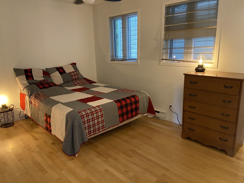 2 chambres avec lits Queen, un troisième lit au sous-sol et un divan lit pour accueillir confortablement votre famille ou vos amis