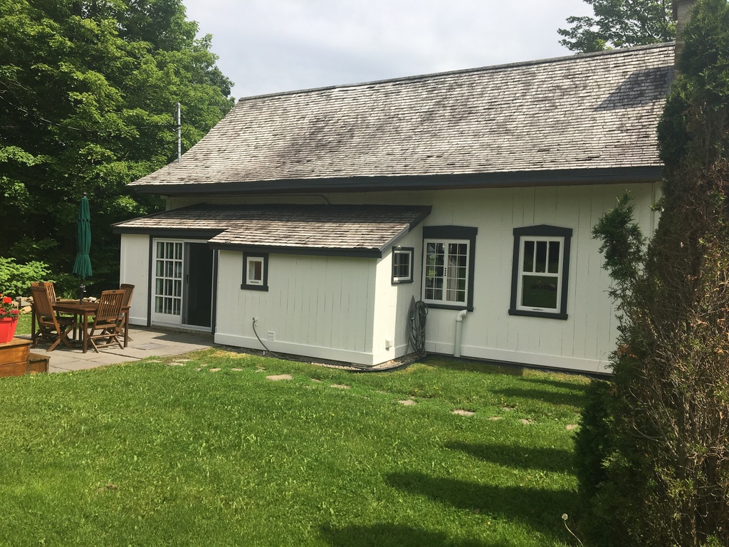 Notre terrain est très grand et intime. Il vous offre toutes les commodités pour profiter de l’extérieur (y prendre le repas, lire ou simplement s’y reposer). Sur le balcon avant de la maison, vous avez une magnifique vue sur le fleuve St-Laurent et l’Île d’Orléans ( de l’intérieur aussi car la maison est très fenestrée et lumineuse).